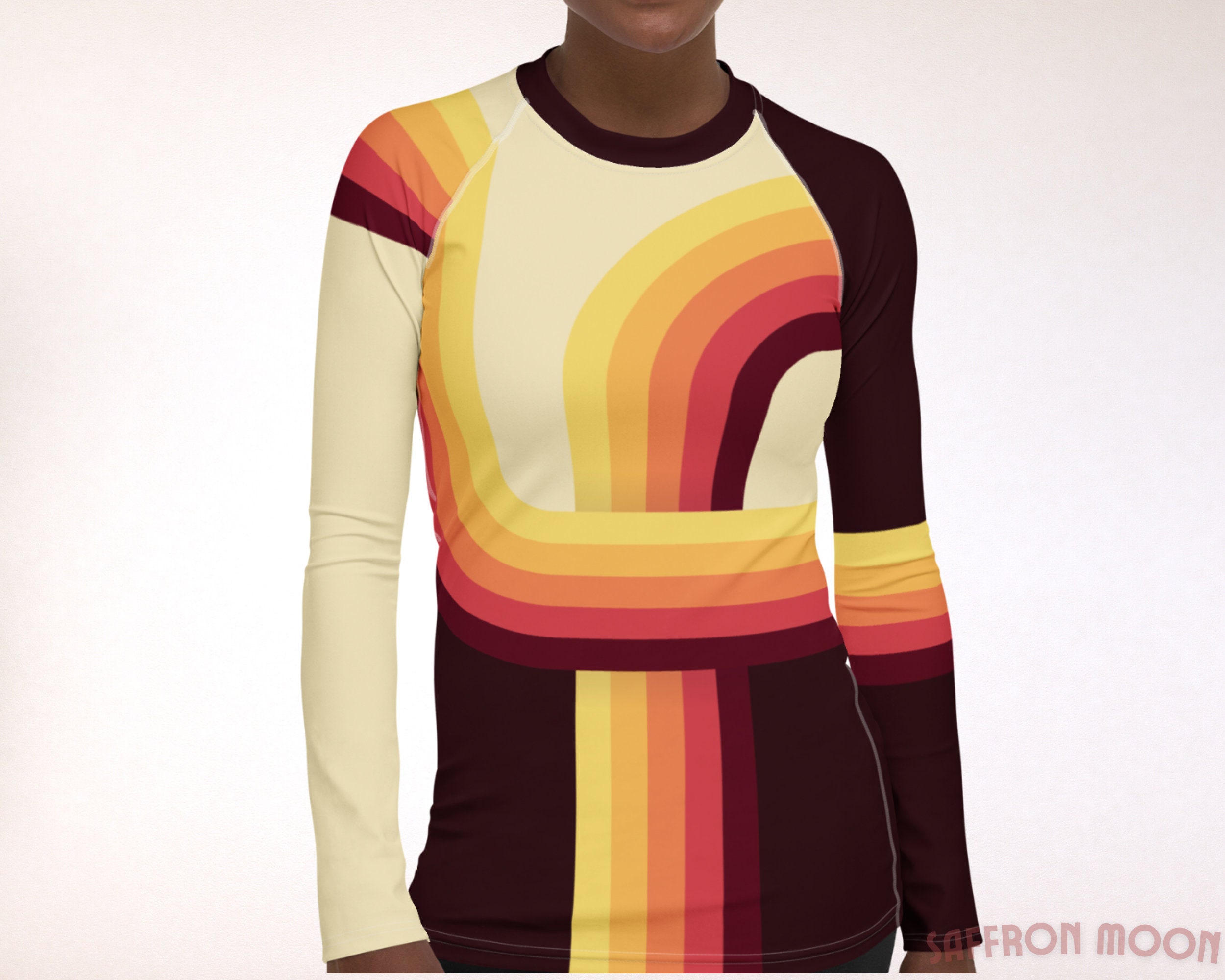 70s Retro Rash Guard In Maroon Off White W Red Orange Yellow Etsy Canada